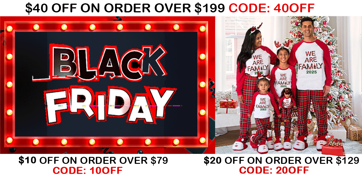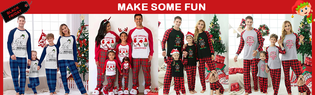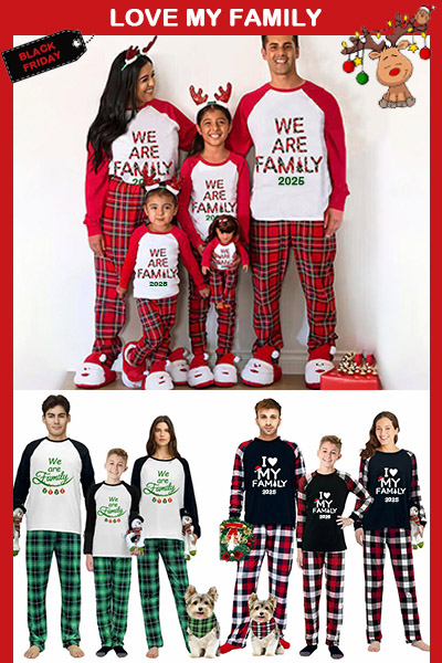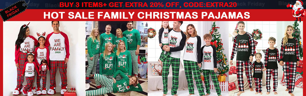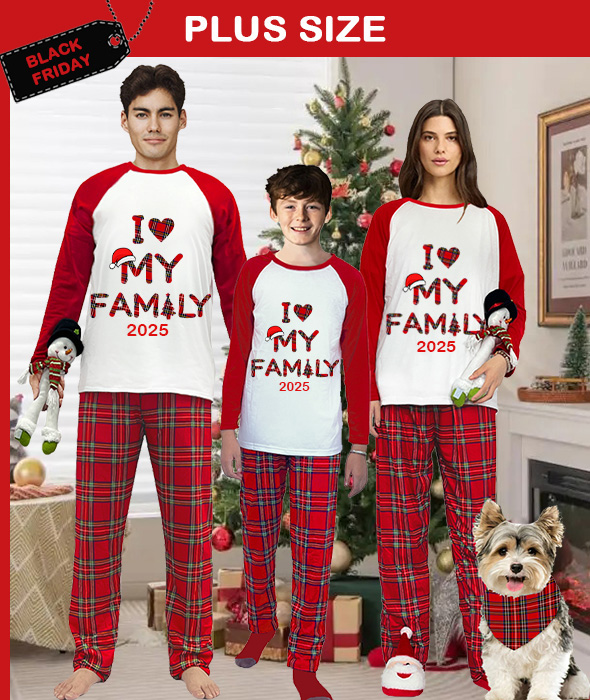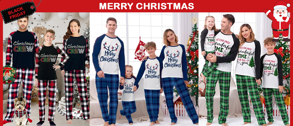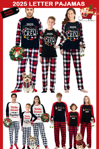 Christmas Matching Family Pajama Santa Christmas Crew Lights Black and Red Pajamas Set